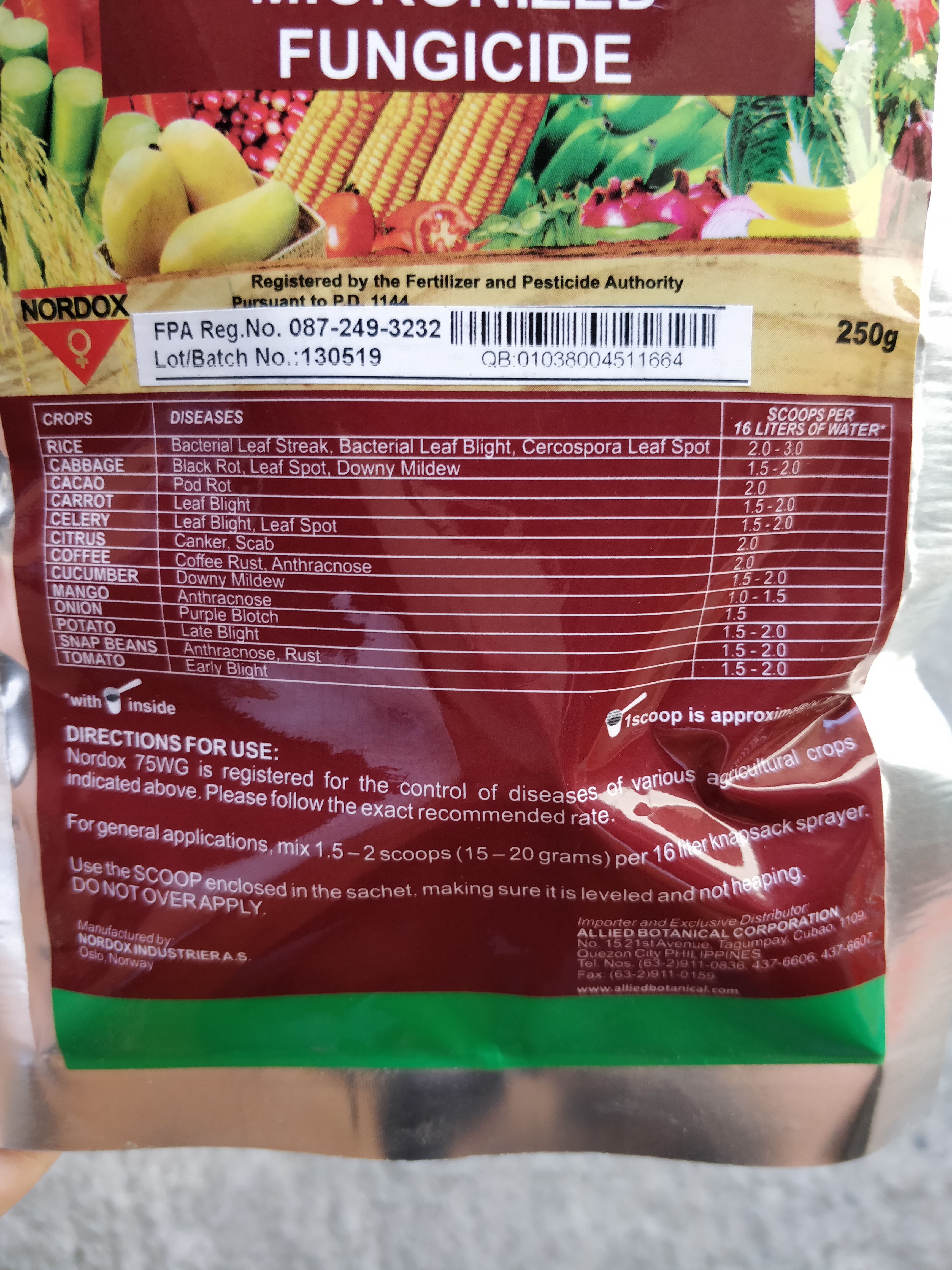 NORDOX 75 WG - efthymiadis.gr NORDOX 75 WG . view. Active Ingredients: Copper oxide 75%: Product Type: Water Dispersible Granules (WG) Composition: Copper oxide: 75% w/w Co-formulants: 8.54% w/w. Function & Mode of action: Inorganic fungicide with preventive action. ... Always read the label and the product information before use. Nordox 75 WG | Brandt | Agworld DBX | Greenbook View the product label for Nordox 75 WG from Brandt. See active ingredients, product application, restrictions, and more at Agworld DBX, powered by Greenbook. ... Nordox 75 WG Brandt. Labels. Label SDS. Snapshot ID: 50394 Active ingredients Cuprous Oxide. Registration EPA: 48142-4. Pests NORDOX 75 WG - Agripac Headquarters: General Córdova No. 623 and Padre Solano Guayaquil - Ecuador. Phone: (593 -4) 3703870 - 2560400 Email: info@agripac.com.ec Nordox 75WG Copper Fungicide - Militello Farm Supply, Inc NORDOX 75 WG controls fungal and bacterial diseases on a wide range of crops. NORDOX 75 WG is OMRI certified. Effective on a wide range of plants. It is the only wettable granule fungicide/bactericide that contains 75% metallic copper - the highest percent of bio-active copper available today.