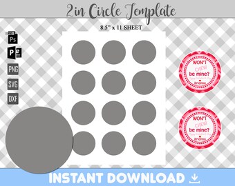 2 inch Circle Template, Circle sticker template, Circle label template, SVG, DXF, Pdf, PsD, PNG, 8.5x11 Sheet printable