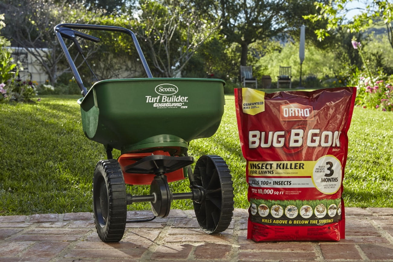 20 lbs. Bug B Gon Lawn Insect Granules - The Home Depot Vigoro 43.9 lbs. 15,000 sq. ft. Weed and Feed Weed Killer Plus Lawn Fertilizer $52.97 Product Overview Ortho Bug B Gon Lawn Insect Killer Protect your lawn, landscape, flower and vegetable gardens and around home foundations against pests. Kill insects in your lawn Available in 2 sizes: 16,500 sq. ft. for 10 lb. bag; 33,000 sq. ft. for 20 lb. bag.