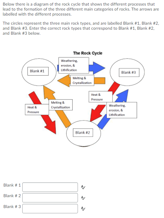 Rock Cycle Diagram (fill in) - Liveworksheets Rock Cycle Diagram (fill in) Fill in a diagram of the rock cycle. ID: 1567140 Language: English School subject: Science Grade/level: 9 Age: 14-14 Main content: Rock cycle Other contents: rock cycle Add to my workbooks (7) Download file pdf Embed in my website or blog Add to Google Classroom Add to Microsoft Teams Share through Whatsapp