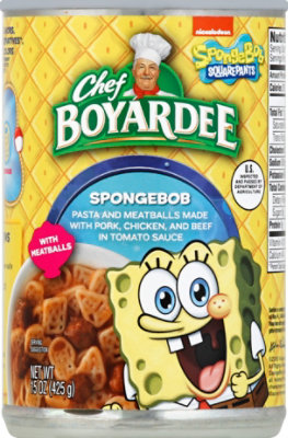 Chef Boyardee Foodservice | Conagra Foodservice Chef Boyardee® combines the taste kids crave and the nutrition they need. With the majority of products at 30% calories from fat or less and 820 mg of sodium or less, you can be sure you're serving wholesome pasta meals. Choose from a variety of canned pasta flavors. CHEF BOYARDEE BEEF RAVIOLI 15 OZ SKU 6414404315 CHEF BOYARDEE BEEF RAVIOLI 40 OZ Chef Boyardee Nutrition Info & Calories Mar 2023 | SecretMenus Nutritional Info for the Chef Boyardee menu Lasagna Macaroni Meatballs Pasta Pizza Ravioli Entire List Lasagna Lasagna Whole Grain Lasagna Expand Lasagna Description Lasagna Serving Size - Per 1 cup Serving Size Per 1 cup Calories 230 Total Fat 8 Carbs 31 Protein 9 Expand « Whole Grain Lasagna Serving Size - Per 1 cup Serving Size Per 1 cup Chef Boyardee Spaghetti & Meatballs Value Pack, 14.5 oz, 4 count * The % Daily Value (DV) tells you how much a nutrient in a serving of food contributes to a daily diet. 2,000 calories a day is used for general nutrition advice. ... Chef Boyardee Spaghetti & Meatballs Value Pack, 14.5 oz, 4 count Pasta and Meatballs Made with Pork, Chicken and Beef in Tomato Sauce No artificial preservatives* *See back panel ... Nutrition facts for CHEF BOYARDEE Spaghetti and Meatballs in tomato ... Nutrition Facts Serving Size cup (257g) Amount per Serving Calories 257 Calories from Fat 89 % Daily Value * Total Fat 10.0g 15% Saturated Fat 4.1g 20% Trans Fat 0.4g Cholesterol 17mg 6% Sodium 925mg 39% Total Carbohydrate 30.6g 10% Dietary Fiber 4g 14% Sugars 7.6 Protein 11.2g Vitamin A 0% • Vitamin C 3% Calcium 3% • Iron 12%